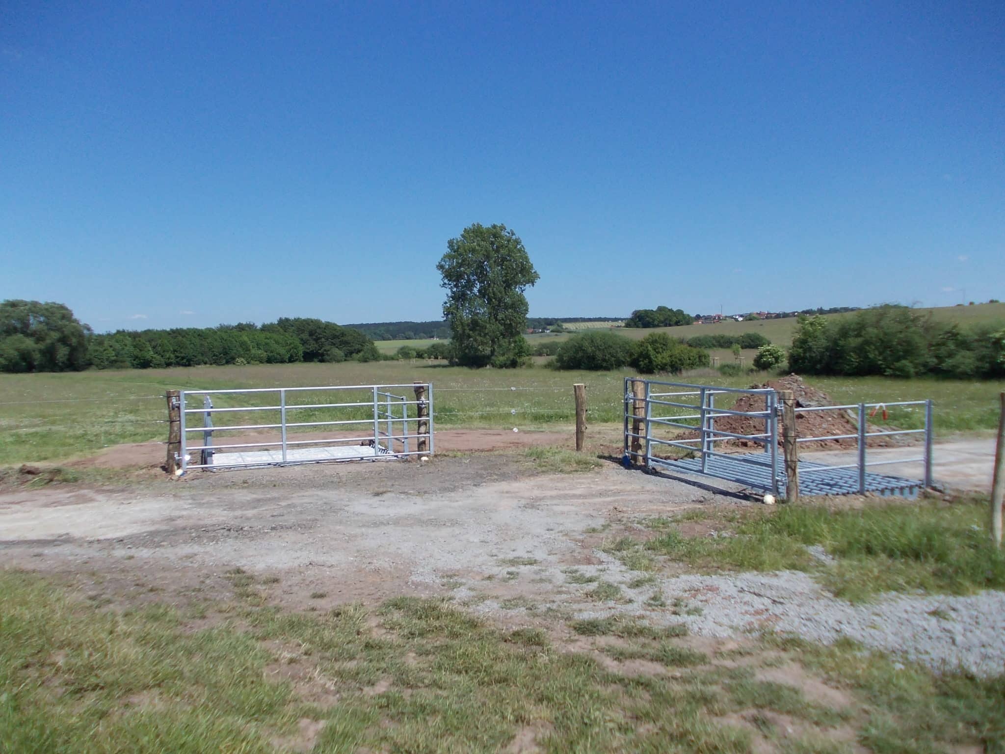 Aus unseren Erfahrungen gibt es Mindeststandards die z.B. der Außenzaun erfüllen muß. Wir zeigen im folgenden, dass sich die Zaunanlagen auch für eine Pferdeweide auf der Außenseite in einem Zaun verwirklichen lassen. Auch bei den Toranlagen muß noch weiter gedacht werden. Was nützt ein Tor, welches den ganzen Tag offen steht?